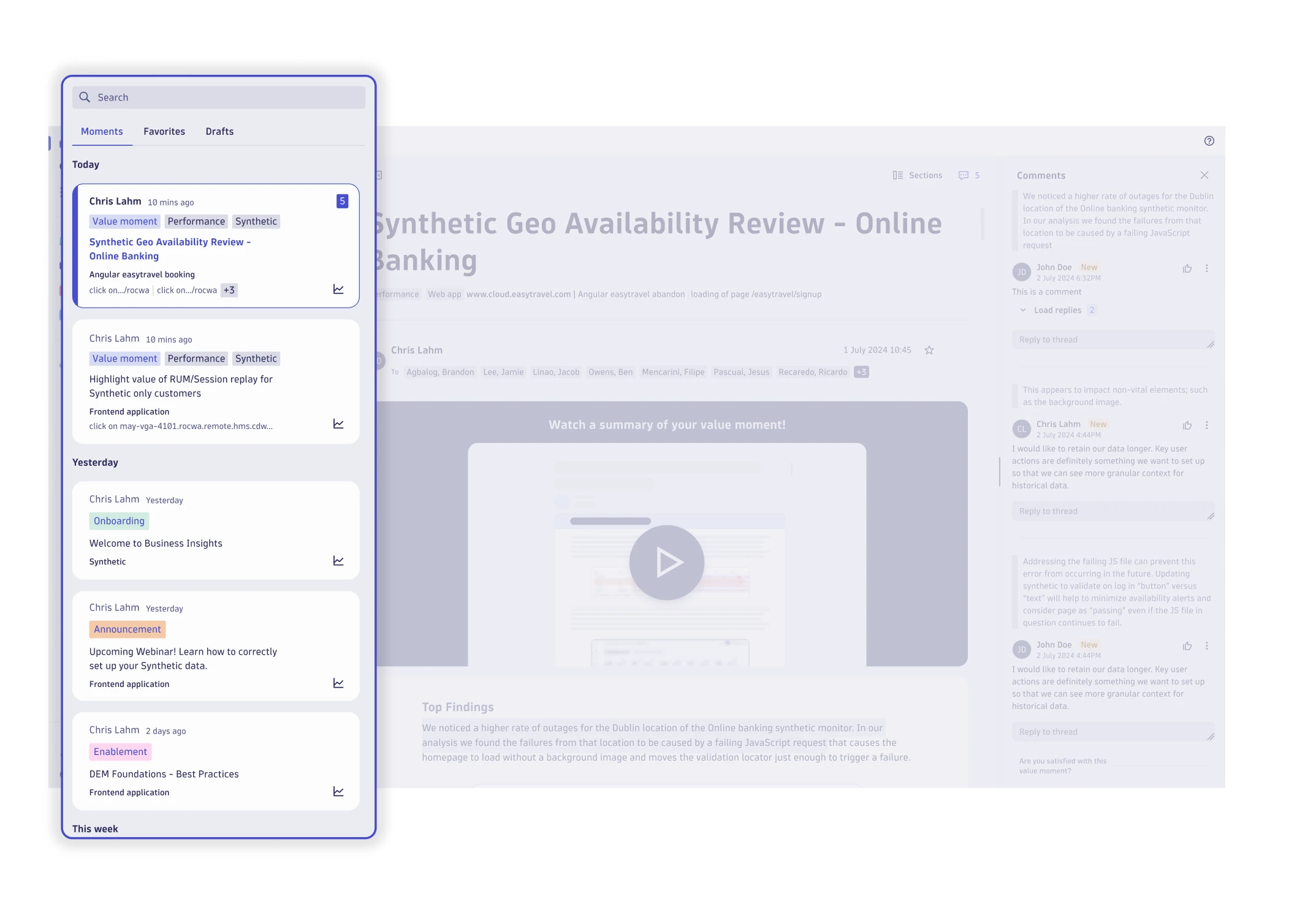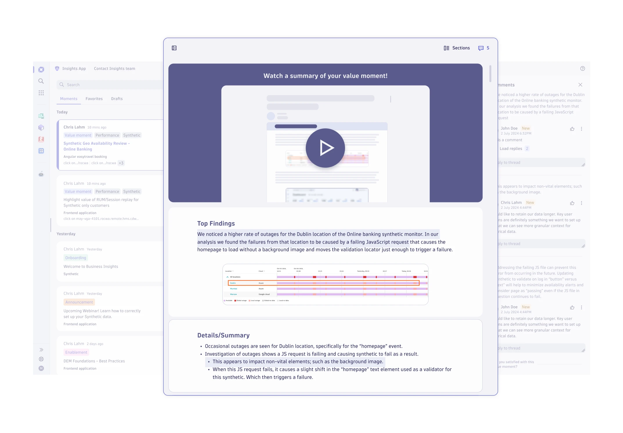 다이나트레이스는 비즈니스 인사이트를 제공하기 위해 몇 가지 정말 강력한 기능들을 플랫폼에 직접 통합했어요. 핵심 내용을 한번 살펴볼까요?